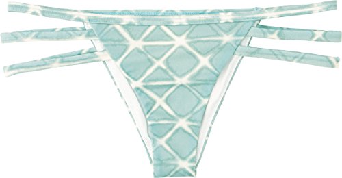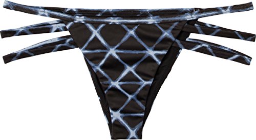 Low-rise patterned bikini bottom featuring binding at waistband and three-strap sides
