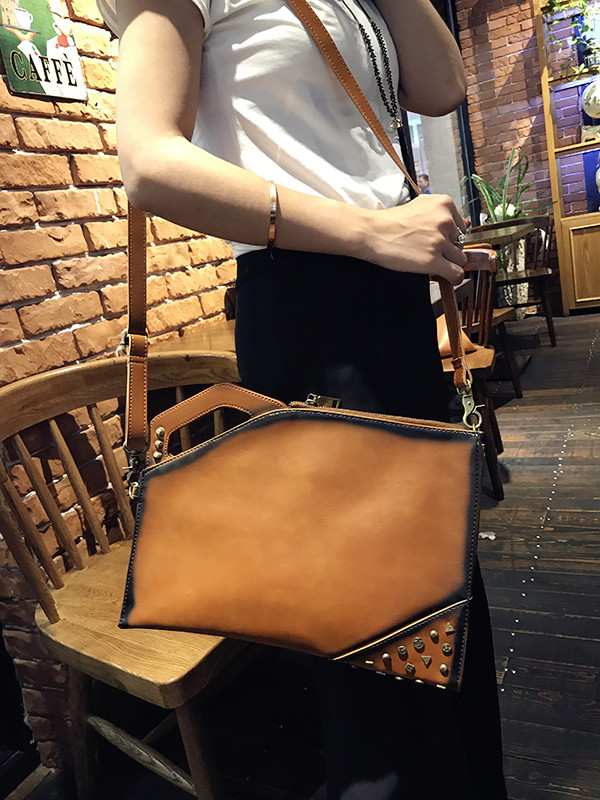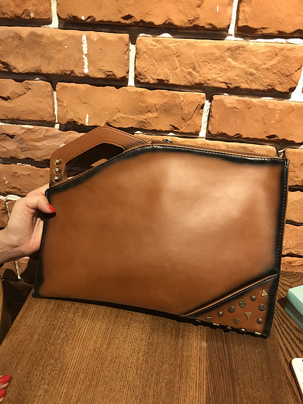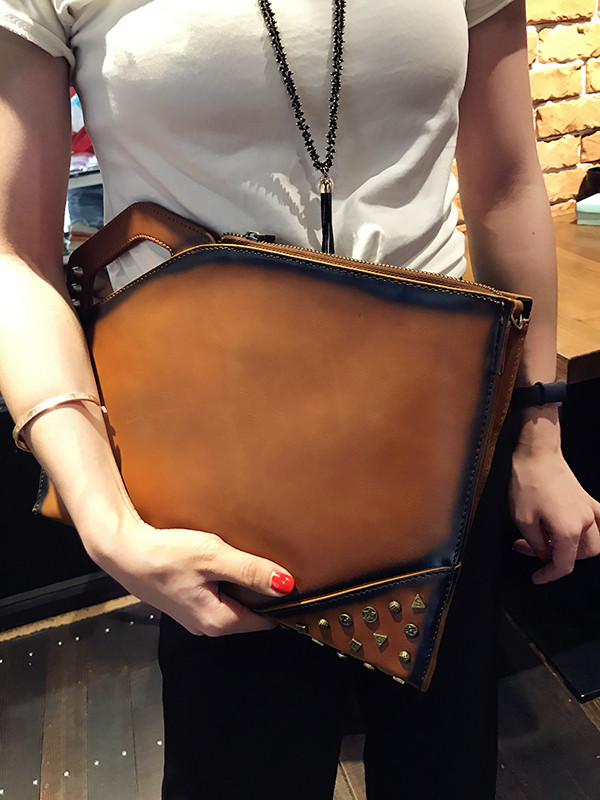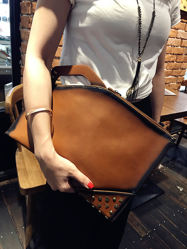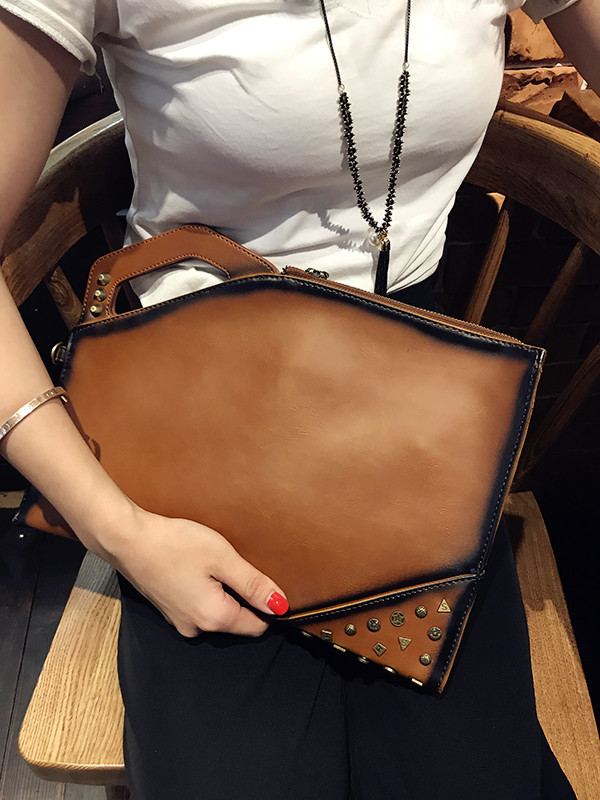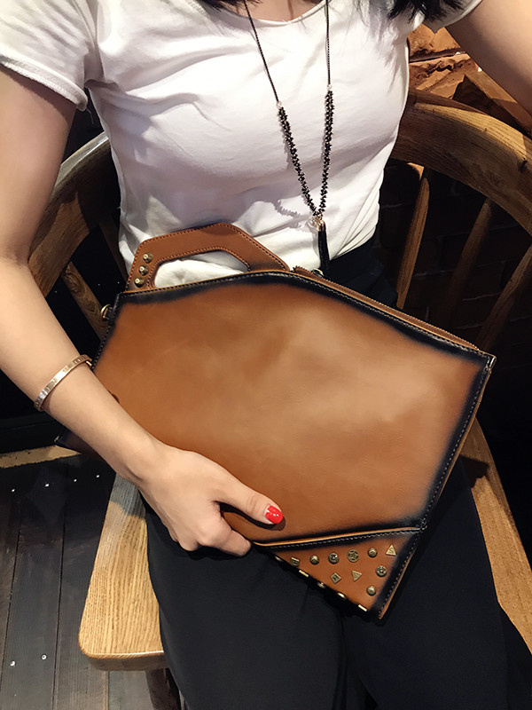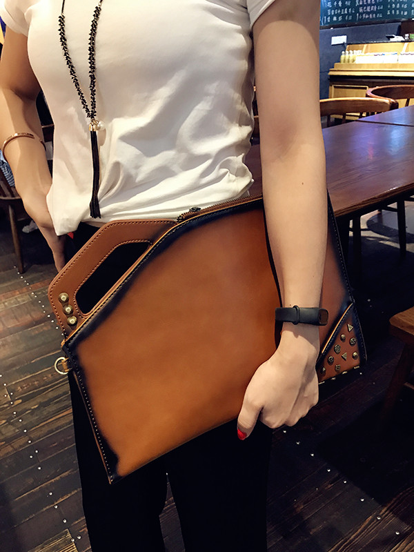 手包女新款手拿包个性复古信封包时尚铆钉单肩斜挎包女iPad包