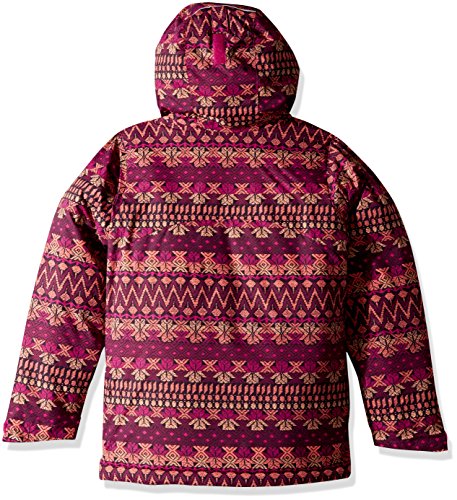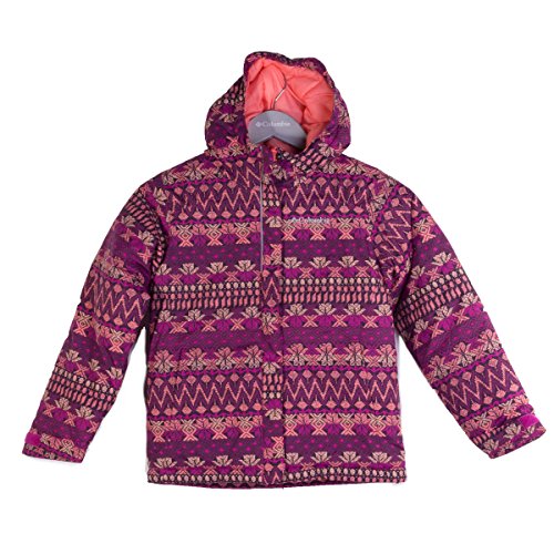 Columbia Infant and Toddler Size Chart Columbia Little Kids and Big Kids Size Chart Lively prints combine with a waterproof nylon shell fabric and tons of toasty insulation to warm up the coldest winter days. Regular Fit is an easy, lightly relaxed fit for comfortable range of motion. Omni-Shield™ Hydra Cloth 3000 shell:• Waterproof fabric resists liquid absorption to prevent staining.• Dries several times faster than traditional fabric.• Retains less moisture than conventional material to stay lighter even when wet. Farenhot insulation:• Low-loft polyfill insulation provides warmth without bulk.• Crimped polyfill increases surface area to improve warmth retention.• 240 g/m² fabric weight. Attached three-piece hood with brim. Full zip with hook-and-loop storm flap. Long sleeves. Hook-and-loop tab cuffs are contoured for improved coverage. Zip hand pockets. Hook-and-loop inner pocket with headphone cord router. Straight hemline. Fully lined. Body: 100% nylon;Lining: 100% nylon;Insulation: 100% polyester. Machine wash and tumble dry. Imported. Measurements: Length: 21 in Product measurements were taken using size SM (7-8 Big Kids). Please note that measurements may vary by size.Feature