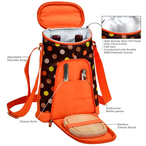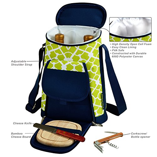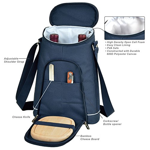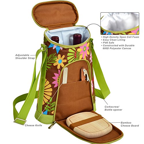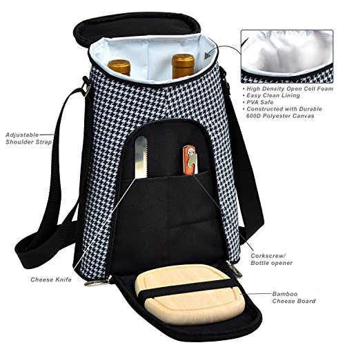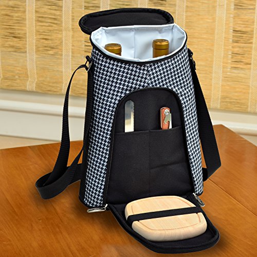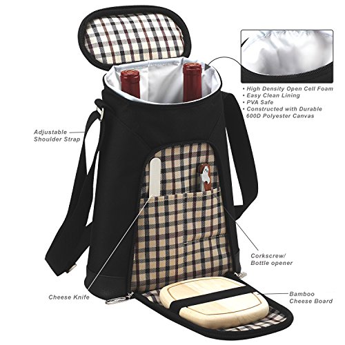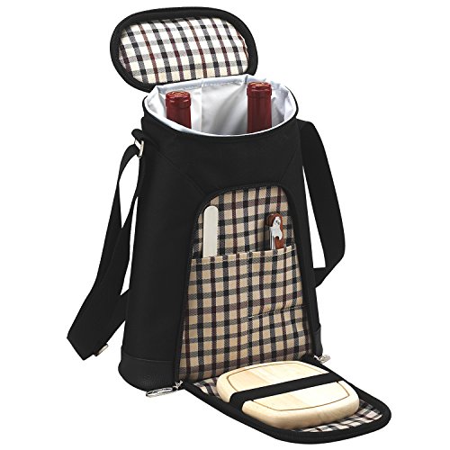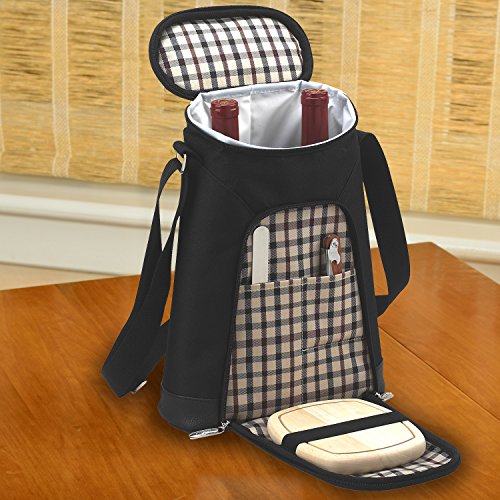 | Picnic at Ascot Stylish 2 Bottle Insulated Wine Tote Bag with Cheese Board, Knife and Corkscrew... |