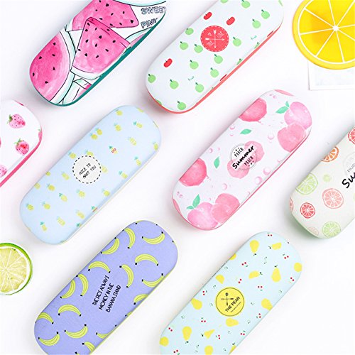 Binding : Apparel Product Description Material: Our hard case is made out of metal and artificial leather which let you feel smooth, the inside is velvet to protects your glasses from scratches, bending and other damages. Fruits design: Cute and Fresh pattern makes your case very special from others! Perfect Gift for Women and Children. Size: 6.50x2.44x1.53 inch/16.5*6.2*3.9cm, fits most standard sized eyeglasses, sunglasses and reading glasses