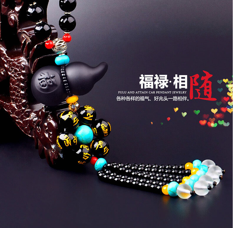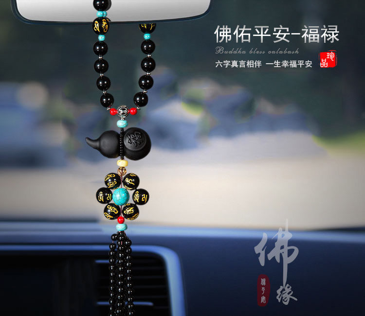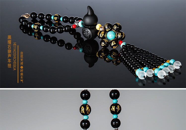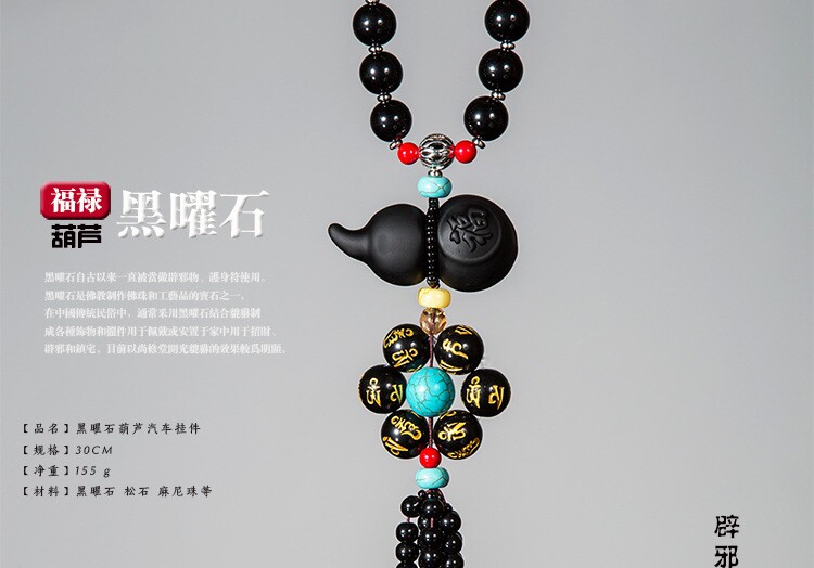 汽车挂件 黑曜石葫芦车内挂饰保平安符汽车饰品保平安佛珠车饰品