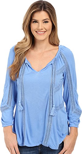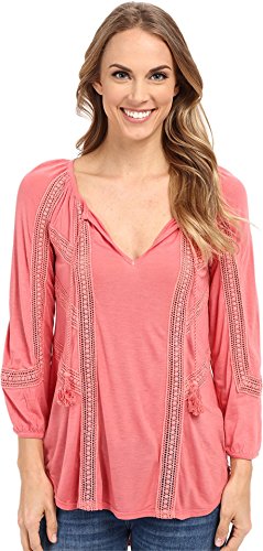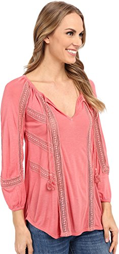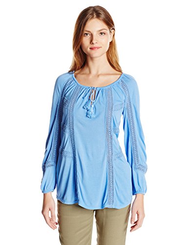 Smooth fabrication in a stunning solid. Split neckline with tie detail. Blouson bracelet sleeves. Pullover design. Droptail hemline. 100% viscose. Machine wash cold, tumble dry low. Imported.