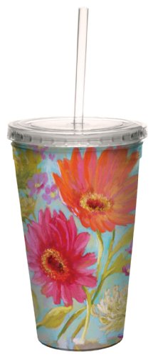Tree-Free Greetings cc33728 Fresh Faces Floral by Nel Whatmore Artful Traveler Double-Walled Cool Cup with Reusable Straw, 16-Ounce