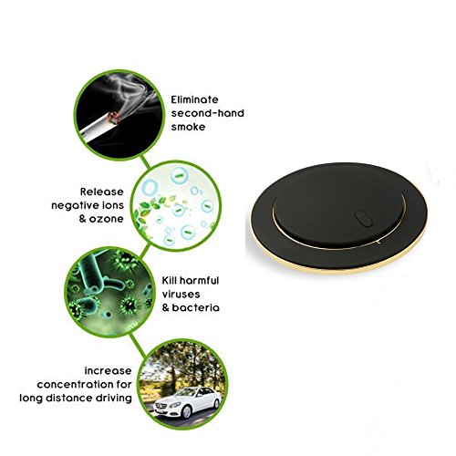 - Feature : Improving air quality and removing unwanted smoke, odors, pollen,air propulsion, dust and more. Known in many cases to benefit sufferers of the following: Allergic Bronchitis Allergic Sinusitis Asthma Chronic Obstructive Pulmonary Disease Chronic respiratory tract allergies. Absorbing unwanted smells, stale odors, car seat leather, dust, smoke or gases. Top car air freshener, active fast for fresh, dry and odor free environment / Eliminates generation airborne bacteria by 99%, while providing the activation of the cells of the body and mental clarity. In-built photocatalytic car air purifier to treat airborne contaminants via UV filtration. Breaks down DNA of living organisms such as bacteria, mold & yeast spores, fungus, and mildew / Fashionable Unique Design Car Air Purifier with 3,000,000pcs/cm3 Negative Ion / Can add fragrance, and incense ball. Two kinds of flavoring function: can add solid fragrance, also can add the liquid essence. / Chemically engineered activated carbon filter absorbing unwanted smells, stale odors, car seat leather, dust, smoke or gases. Top car air freshener, active fast for fresh, dry and odor free environment