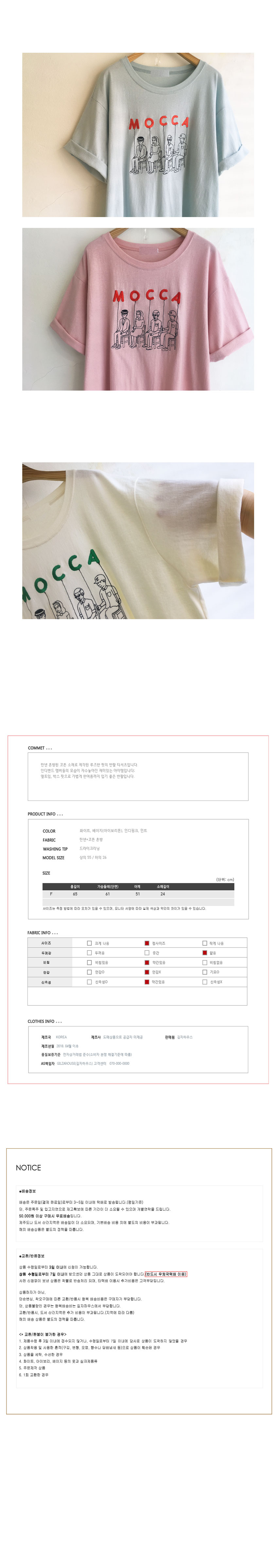 Free(단면): 가슴둘레 61cm, 어깨 51cm, 소매 24cm, 총장 65cm