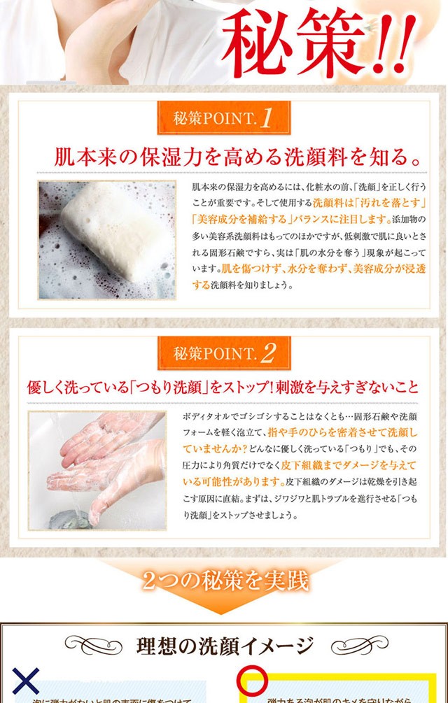 ・直接肌に塗布せずに、泡立てネット等をご利用になり、泡状にして洗顔してください。