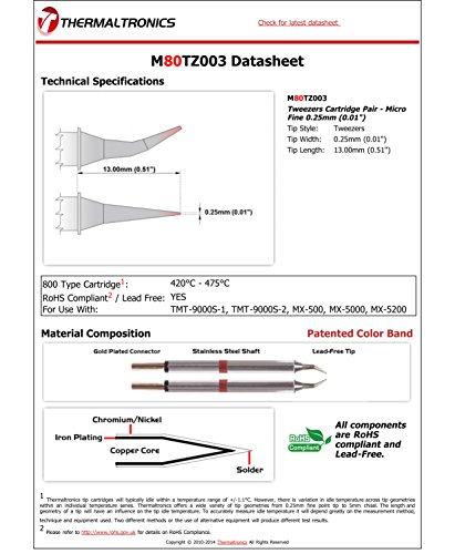 Thermaltronics M80TZ003 Tweezers Cartridge Pair - Micro Fine 0.25mm (0.01")