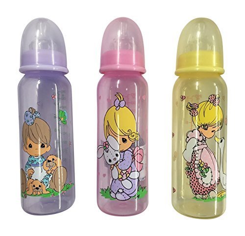 -. Feature : 1 package of 3 Precious Moments Feeding Bottles 8oz each / Made from break resistant BPA Free plastic / Graduated in both ounces and ml / Top rack dishwasher safe / includes 3 Nuby medium flow, anti-colic nipples