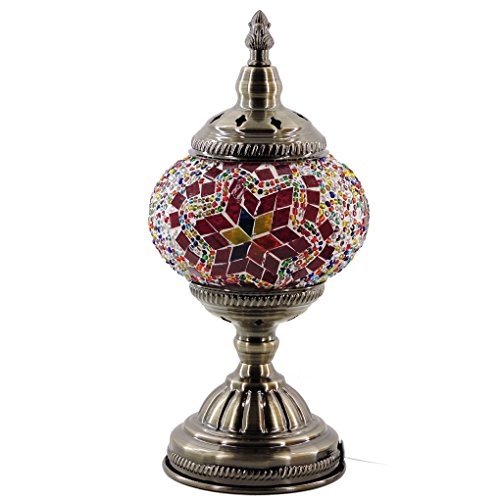 -. Feature : GREAT DÉCOR IDEA: This small decorative turkish style lamp creates instant feel of comfort. The relaxed ambiance of quet lightning is perfect for décor, night light, or to create pleasant atmosfer. SIZE: 9.5"H by 5.9" by 5.9". / BUY WITH CONFIDANCE: Comes with 1 year warranty by Silver Fever Brand. The mosaic shade is handcrafted of genuine moroccan stained glass. / MAKES PERFECT GIFT. Comes in pretty box, ready for gift giving. Typical of tiffany-style lamps, this lamp comes with bronze-colored base and genuine stained glass handmade shade. / READY TO USE: Comes with E12 US candelabra culb cocket,one bulb, easy to assemble. / CLICK "add to cart" to get your Mosaic Glass Handmade Lamp while supplies last and before the sale P.R.Ice is gone!