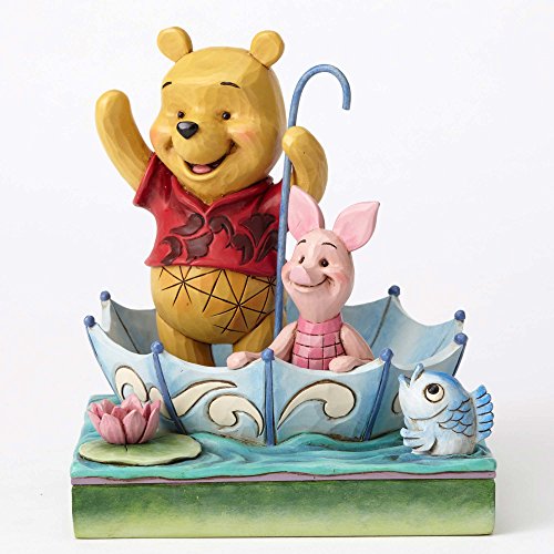 Brand New Disney Traditions Winnie the Pooh Pooh and Piglet 50 Years of Friendship Figurine Pooh and Piglet celebrate "50 Years of Friendship" while sharing smiles and an umbrella raft in this charming creation featuring the beloved Disney characters and the heartfelt style of folk artist Jim Shore. Stone Resin 5.875 in H x 5 in W x 5 in L Item# 4054279Feature