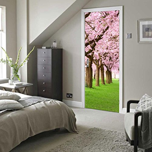 -. Title : 3d Door Wallpaper, vmree Waterproof Cherry Blossoms Door Wall Mural Wall Stickers Decor