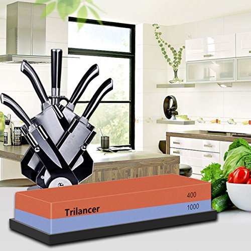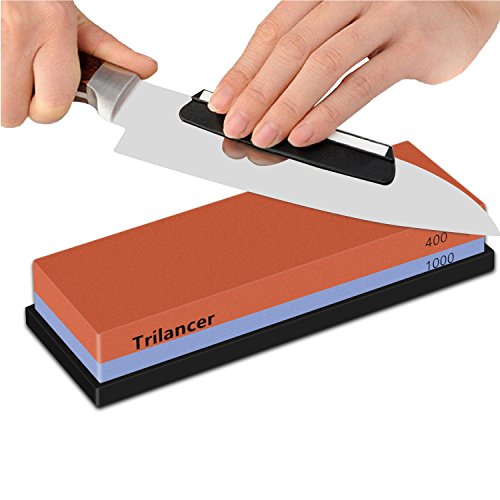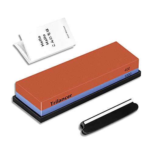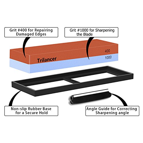 Sharpening Stone Whetstone 400/1000, Trilancer Knife Sharpener Kit, Water Stone, 2-IN-1 Grit, for Edge Repair and Sharpening, Angle Guide and Rubber Base Included