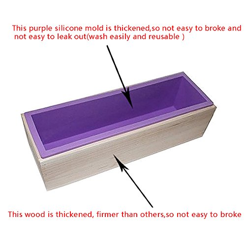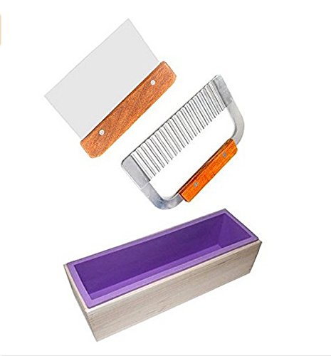 6MILES 1 Purple Flexible Rectangular Silicone Soap Mold with Large Pine Wood Box for Homemade Produce 1.2 Kg Art Craft Soap Making Mold + 2 Pcs Cutter Peeler Slicer Knife Home Kitchen Tool Set