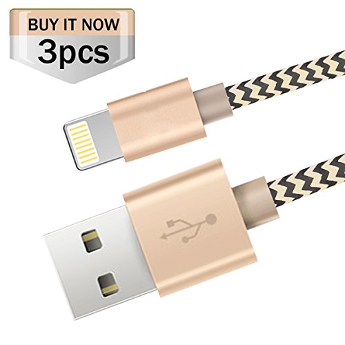 Ambet iPhone Lightning Cable to USB Cable- 3PCS 5 Feet (1.5 Meters) Gold Cord -Sync apple iOS iPhone Charging Charger Cable for iPhone 7/SE/6s/6/ 5/5c/5s/Plus, iPad, iPod