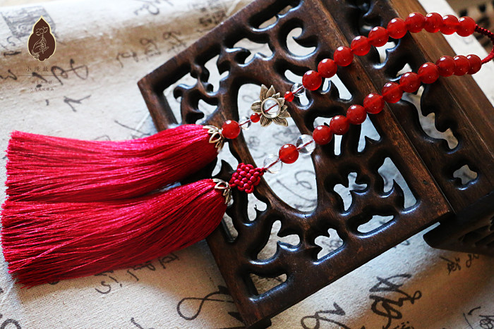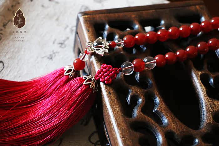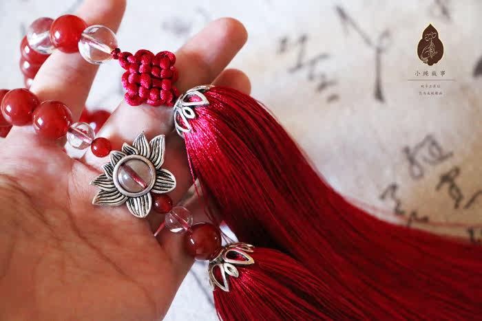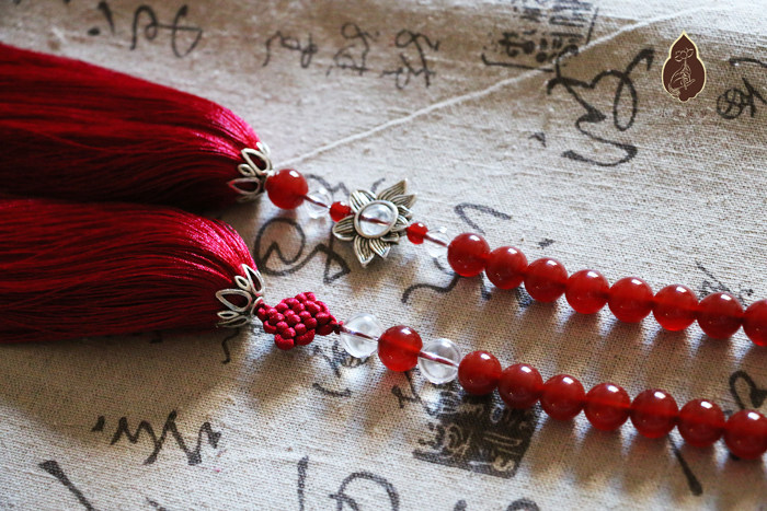 12MM红玛瑙  白水晶    藏银配件 中国结    大流苏