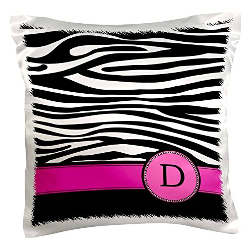 3dRose pc_154275_1 Letter D Monogrammed Black And White Zebra Stripes Animal Print with Hot Pink Personalized Initial Pillow Case, 16" x 16"
