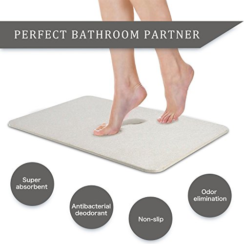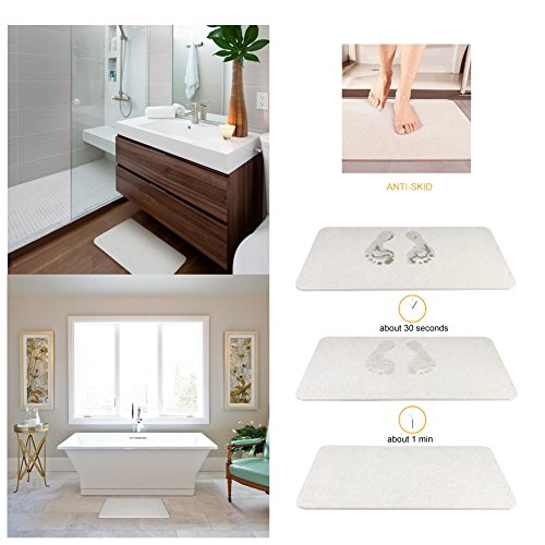 PERFECT BATHROOM PARTNER--It also has amazing water absorbing power and Non-slip function . The water on your feet can quickly suck away . When your feet leave the bath mat, the wet footprints will disappear within 15 seconds.The strong water absorption ability and Good anti-skid performance could become your a perfect bathroom partner.