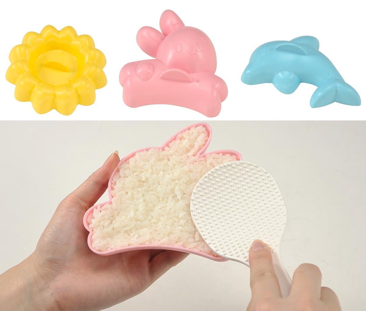 Arnest My Form Rice Press Mold 3pcs (Rabbit Dolphin Flower) & Food Press Cutter for Decoration (76057)