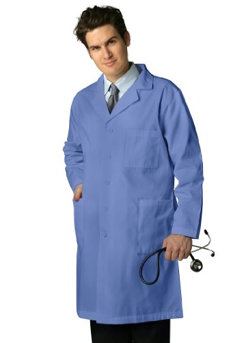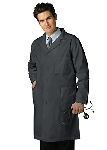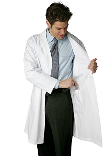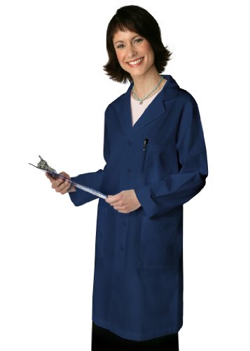 Classic lab coat, has everything you expect a good lab coat to have, including two large patch pockets, one chest pocket with pen divider, and extra inner pockets and side hand vents for easy access to whatever is being worn underneath. In the back are a buttoned belt and walking slit. Center back length 39"Feature