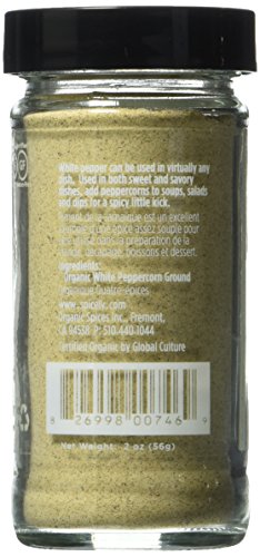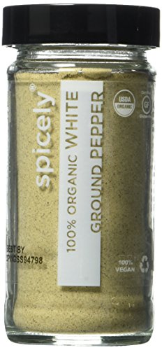 Spicely Organic Peppercorn White Ground - Glass Jar - Gluten Free - Non Gmo - Vegan - Kosher
