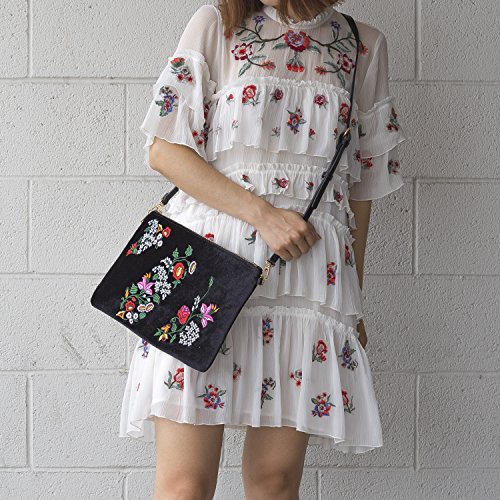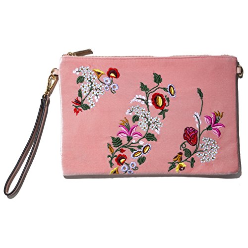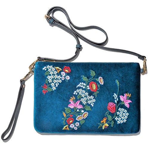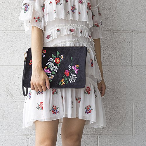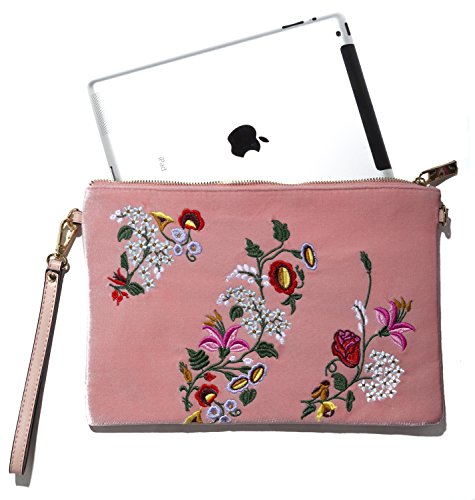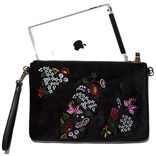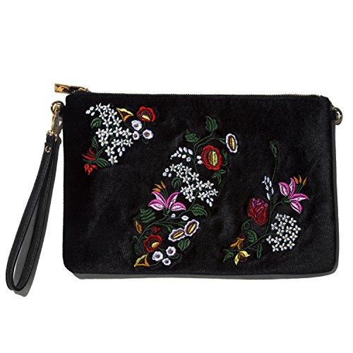 -. Title : Handbag Republic Velvet Flower Embroidered Clutch Purse With Wrist Strap Wristlet Crossbody Bag For Women