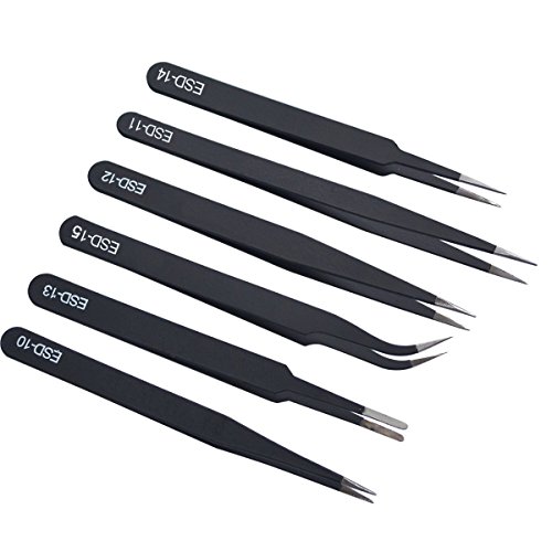 6pcs ESD Precision Anti-static Tweezers, Marrywindix Tweezers Stainless Steel Tweezers With a Bag for Electronics Jewelry-making Repairing