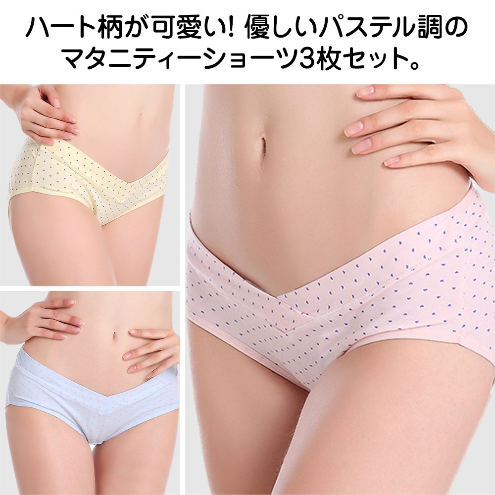 Maternity shorts Comfortable low rise No oppressive feeling Heart pattern 3 piece set (L)