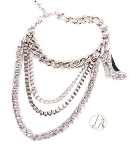 -. Title : Rhinestone High Heel Shoe Chain - Anklet / AZFJBT021-SIL