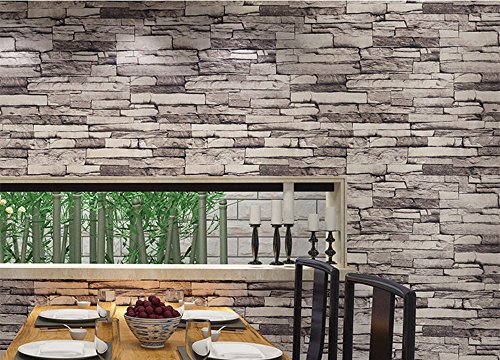 Modern 21 Inch By 394 Inch Stone Texture Pvc Waterproof Brick Wallpaper Wall Decor Wall Murals for Restaurant,Bedroom,Hotel,Living Room,Walls (022)
