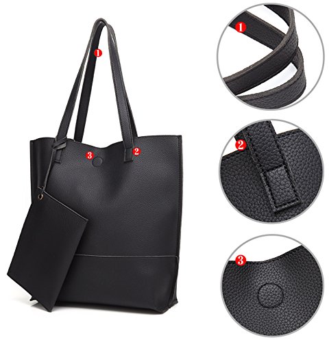 -. Feature : High quality synthetic vegan leather. / Magnetic closures. Classic gold hardware. / Coin bag with zipper closure. / Shoulder strap drops 9.5". / Size: 16" x 4" x 14"