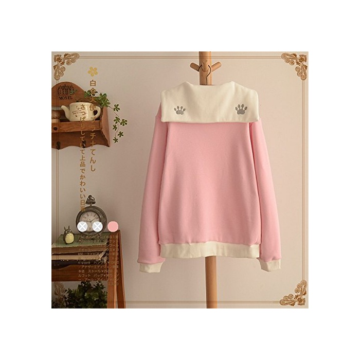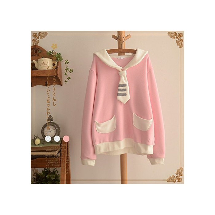 Mamamiya 로리타 기쁨의 표현 레이디스 파커 세라복 세일러금 블라우스 귀여운 리본 후와(불화) 후와(불화) 큰 삼걸 청순풍 캐주얼 추동 핑크