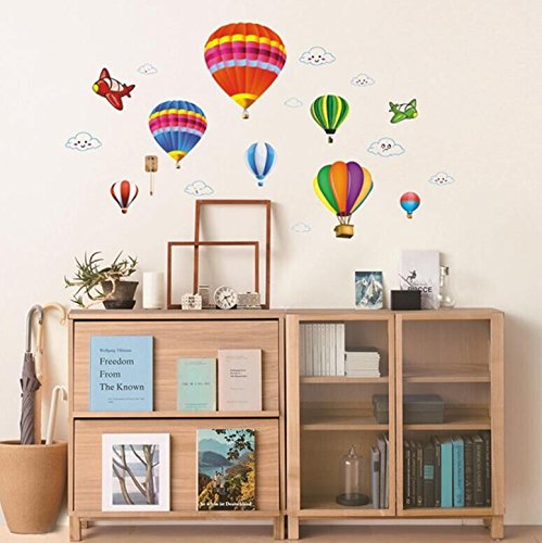 -. Title : Removable 3D Hot Air Balloon Aircraft Wall Decals Removable Wall Decor Decorative Painting Supplies & Wall Treatments Stickers for Girls Kids Living Room Bedroom Office