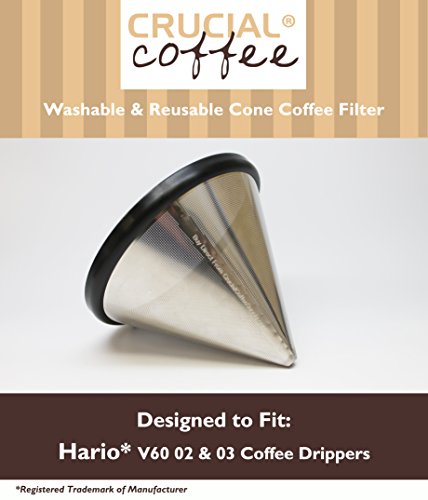-. Title : Washable & Reusable Stainless Steel Cone Coffee Filter Fits Hario® V60 02 & 03 Coffee Drippers, Designed & Engineered by Crucial Coffee