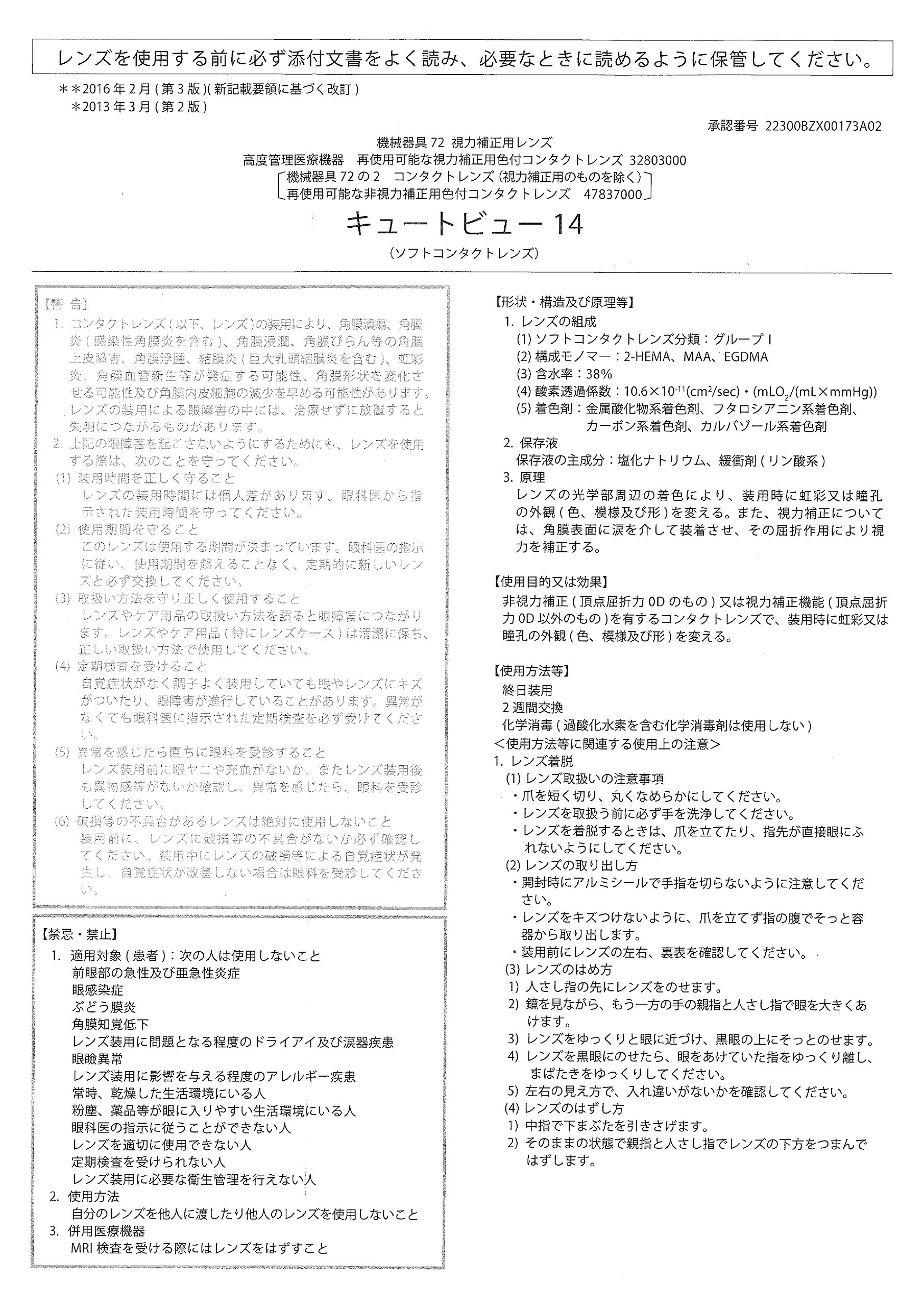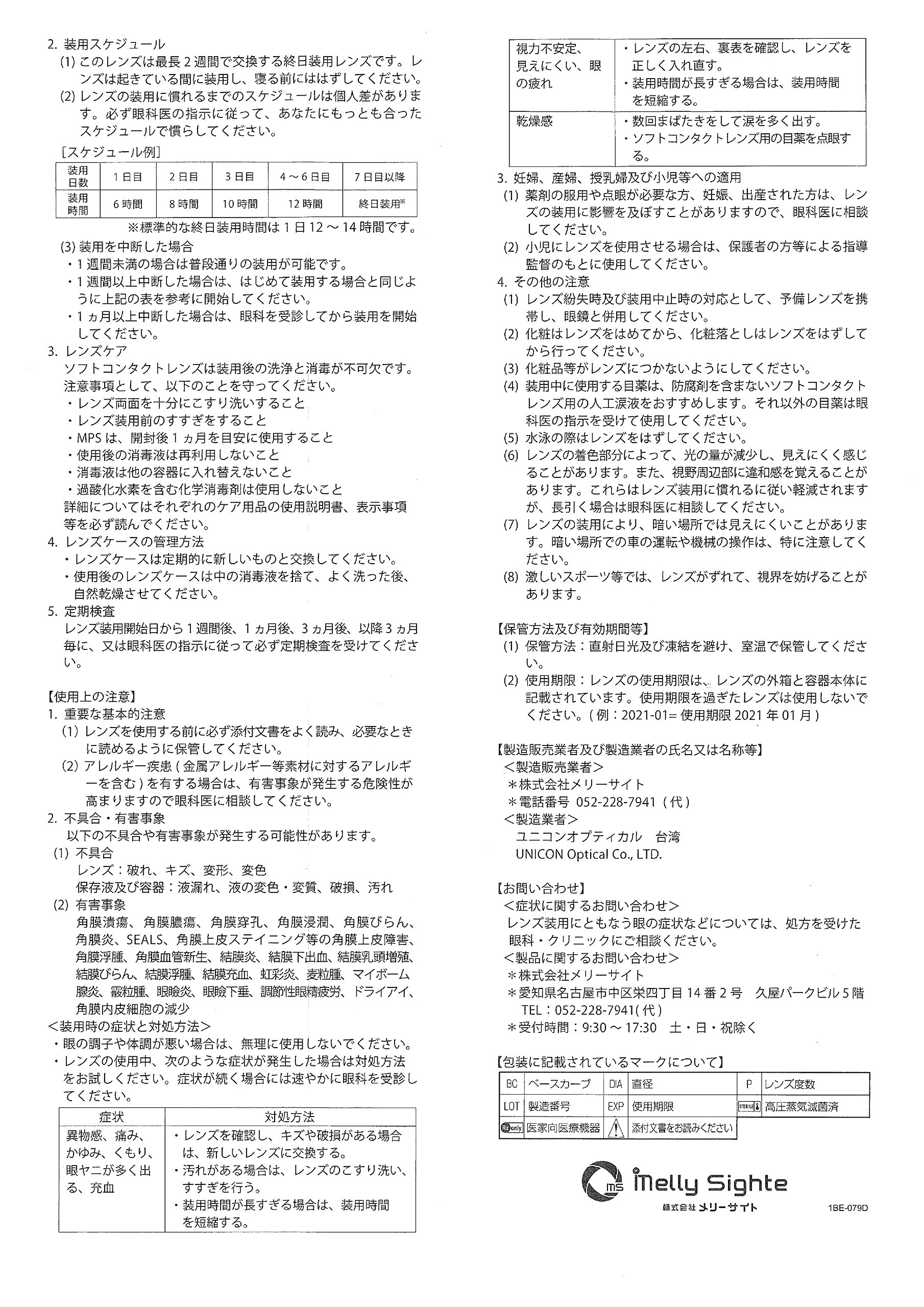 ● If you feel any abnormality, stop wearing and please take the examination of the ophthalmologist immediately.