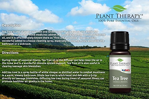 ReleaseDate : 2016-12-02 Studio : Plant Therapy Inc Publisher : Plant Therapy Inc Binding : Health and Beauty Product Description Tea Tree is one of the best known and loved essential oils around the world. For decades, nearly every home medicine cabinet in Australia has held a bottle of tea tree oil, and it is affectionately known there as "first aid in a bottle". Tea Tree oil is wonderful added to a house cleaning spray, especially in steamy, musty areas like the bathroom or a sickroom. During times of seasonal illness, Tea Tree oil in the diffuser can help clean the air in the home and is a wonderful immune system support. Tea Tree oil is also useful in clearing teenage skin blemishes. 0
