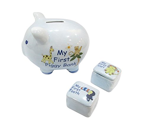 Baby 4 Piece Keepsake Set (Blue) - Piggy Bank, Photo Box, Tooth Holder & Curl Holder