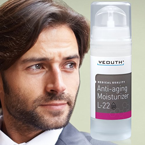 -. Binding : Misc. -. Brand : Yeouth -. EAN : 0671315018914 -. Feature : YEOUTH Anti-aging Moisturizer beats other cream, lotion, serum and toner products, making a visible difference in the look of crow's feet, wrinkles and fine lines, improving skin tone / Acts like an anti-wrinkle eraser, reducing and diminishing discoloration, sunspots and age spots / L22 lipid complex is derived exclusively from natural botanical nutrients including jojoba oil, macadamia oil and olive oil / L-22 demonstrated superiority to other skin-lipid-like compounds when evaluated for barrier repair and skin hydration in clinical studies. L22 demonstrated significant improvements in both aged and sun-damaged skin with regard to skin hydration, firmness, and elasticity in clinical studies -. IsAdultProduct : 0 -. Label : YEOUTH -. Manufacturer : YEOUTH -. MPN : B016LHUDPC -. PackageQuantity : 1 -. PartNumber : B016LHUDPC -. ProductGroup : Beauty -. ProductTypeName : BEAUTY -. Publisher : YEOUTH -. Studio : YEOUTH -. Title : Men's Best Anti-aging Moisturizer With New Patented L22 From YEOUTH -. UPC : 671315018914