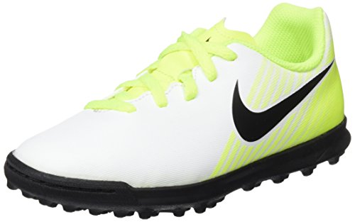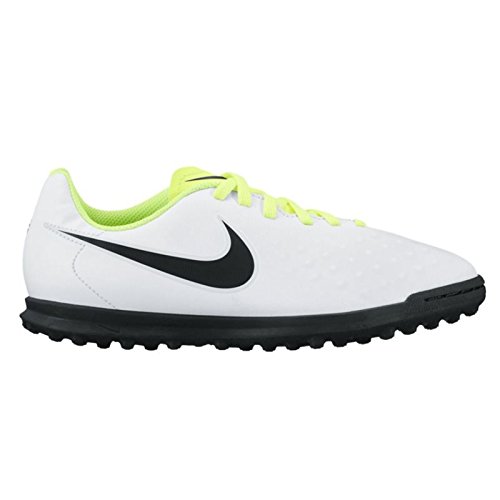 Studio : Nike Publisher : Nike Binding : Misc. Product Description Kids' Nike Jr. MagistaX Ola II (TF) Turf Football Boot Amplify your playmaking in Kids' Nike Jr. MagistaX Ola II (TF) Turf Football Boot. A new streamlined silhouette offers a closer fit with less material in the upper. Synthetic leather ensures you get the touch you need to make big plays. Streamlined silhouette provides a lighter, closer fit. Synthetic leather conforms to the foot for a consistent touch. Asymmetrical lacing system expands the ball control area. Interior heel counter cups the foot for cushioning and a locked-down fit. Rubber compound is engineered to provide grip on turf surfaces. Grade school size range is 1y-6y. 0