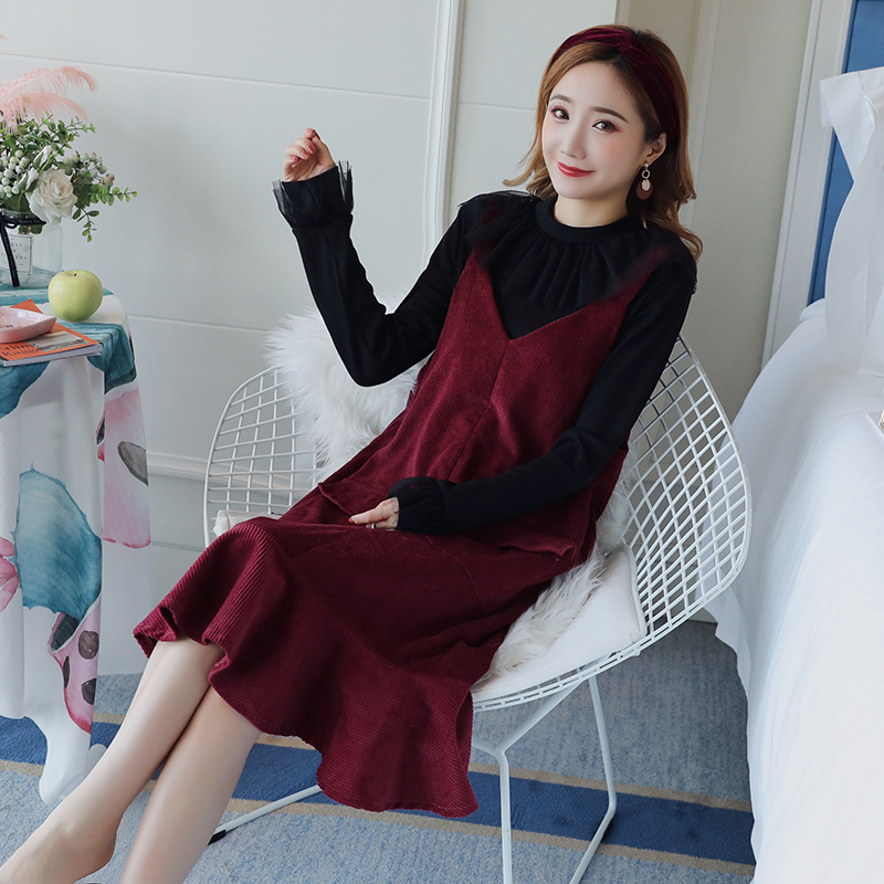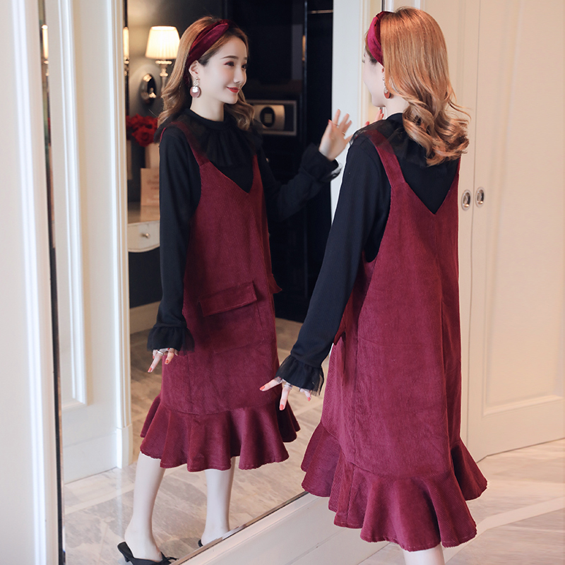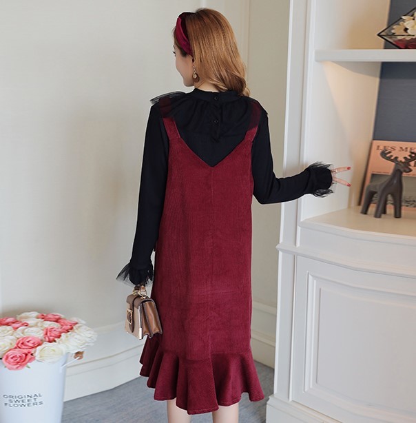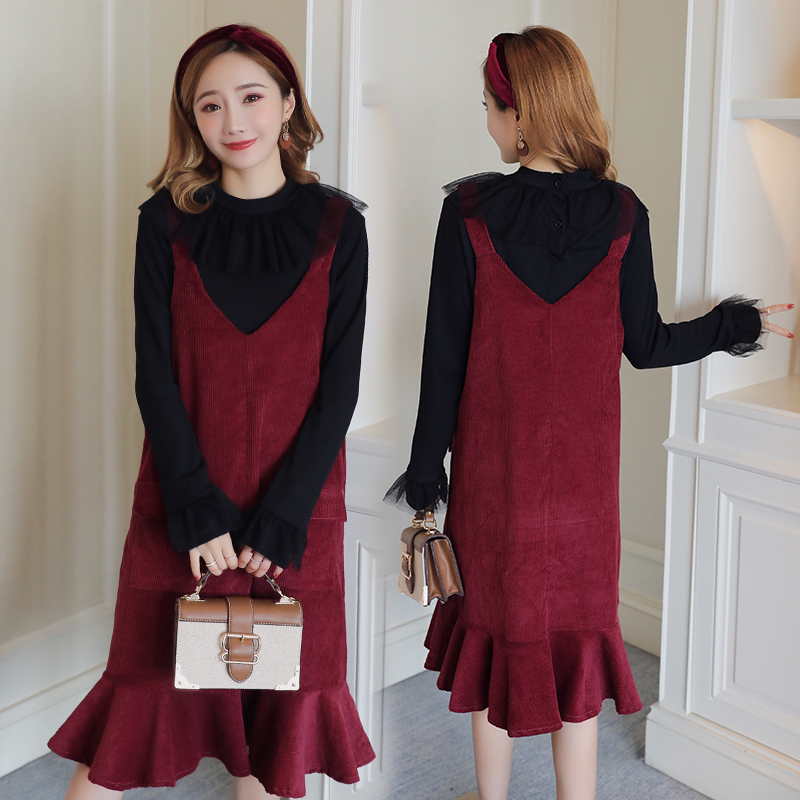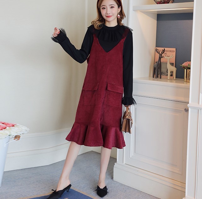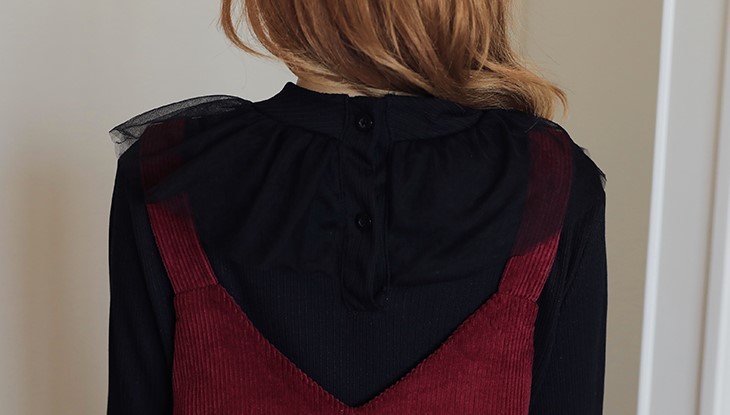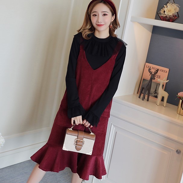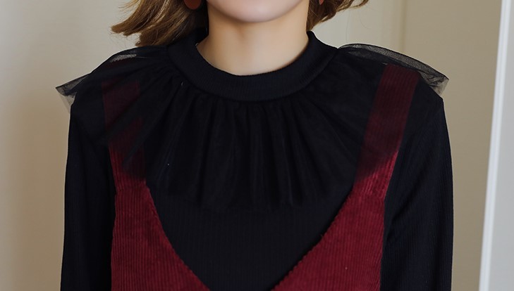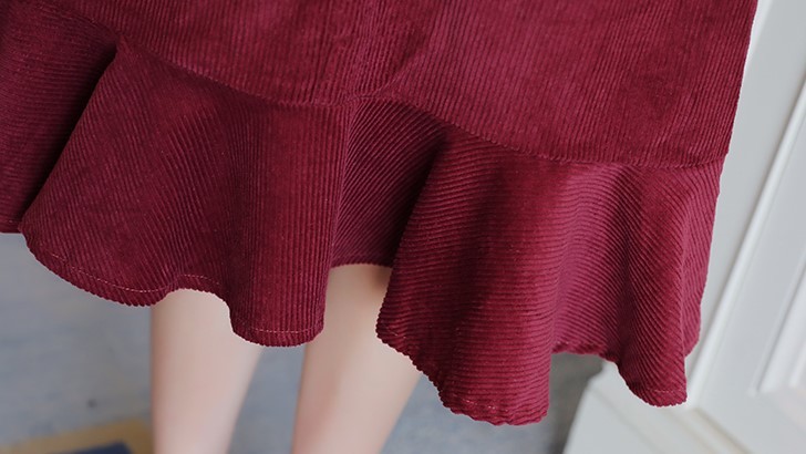 襟元がボリューミーなプルオーバーとコーデュロイジャンスカの2セット。