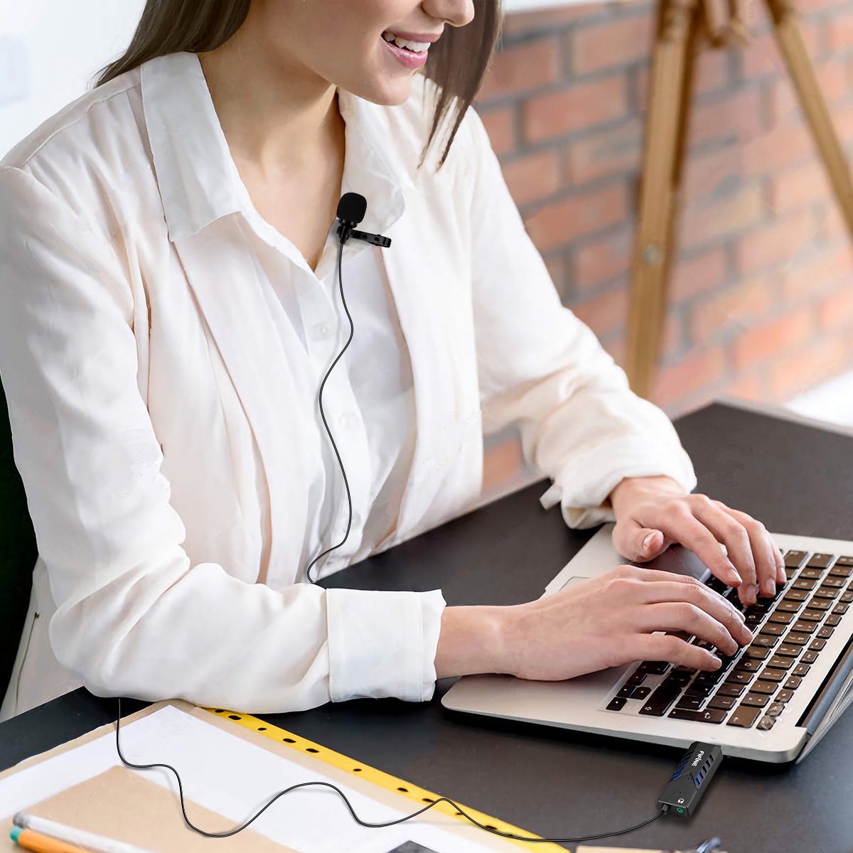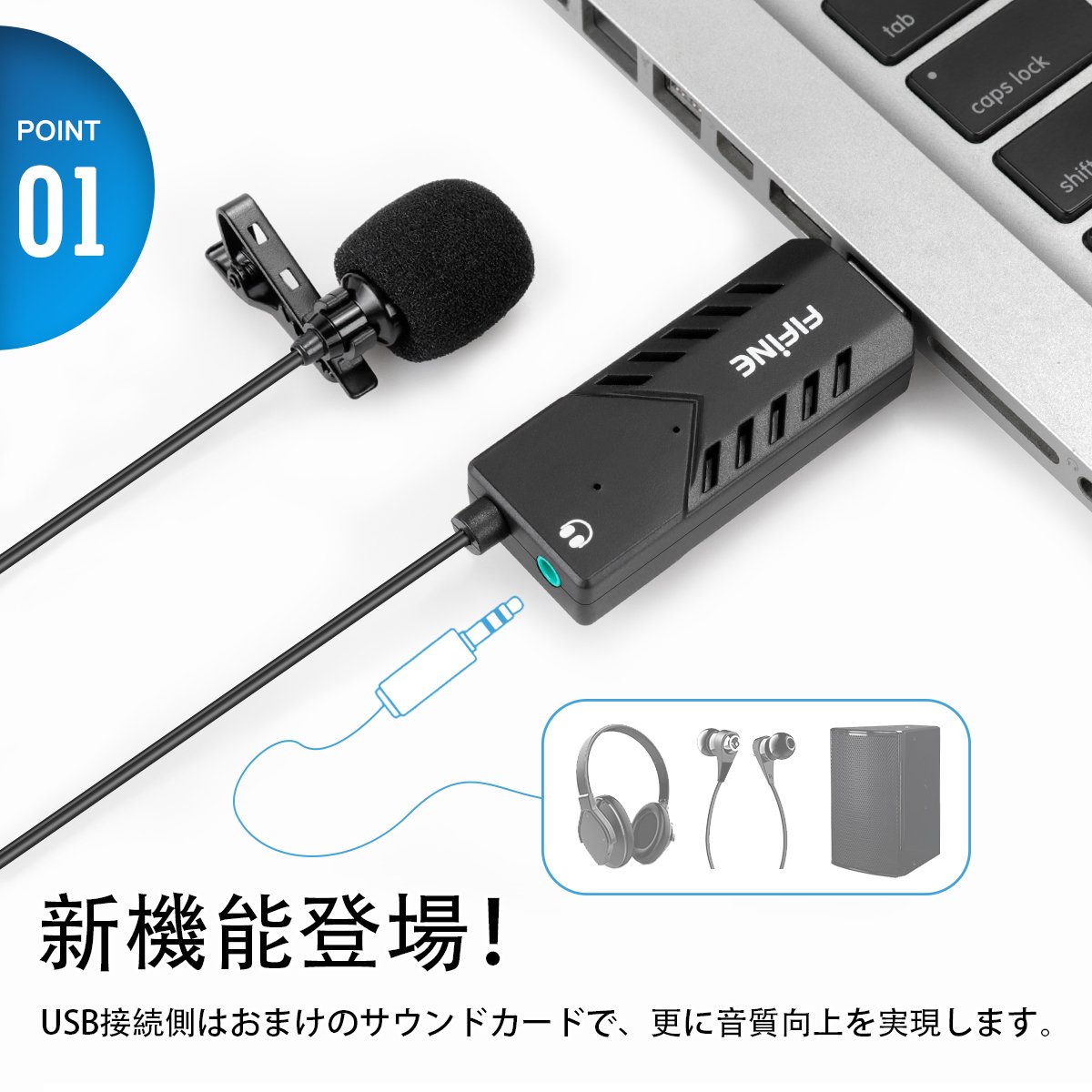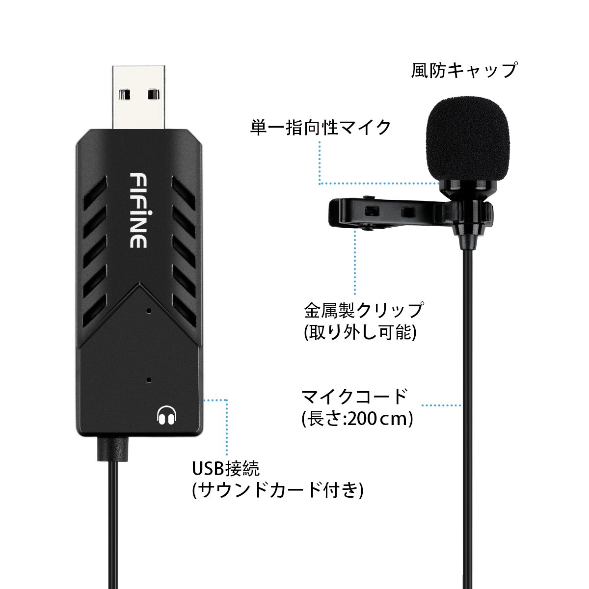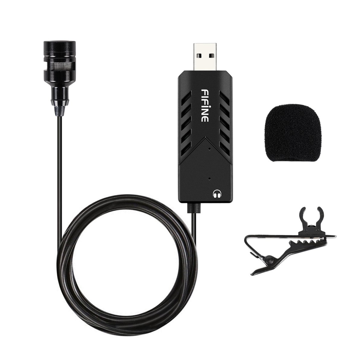 FIFINE K053 is a clip microphone of a combination of mini clip microphone and USB sound card.