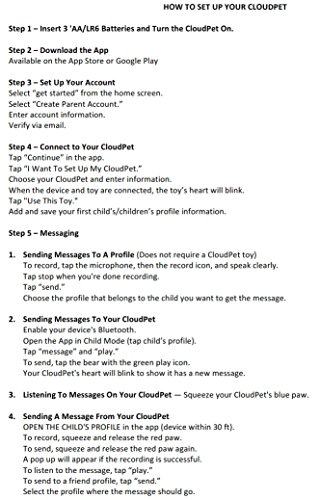 -. Binding : Toy -. Brand : Jay at Play -. EAN : 0032281851156 -. Feature : CloudPets' heart blinks to indicate you have a message. Record and reply from your CloudPets. Parental controls are included; only invited family and friends can leave messages on your CloudPets recordable stuffed animal. / Send and receive messages from anywhere through the cloud with free app. The CloudPets app uses bluetooth technology to send your messages to your pet. / The CloudPets plush toy requires a compatible iOS or Android smartphone or tablet / message you can hug. Send a message to the CloudPets talking teddy bear from anyone from anywhere. -. IsAdultProduct : 0 -. Label : Jay at Play -. Manufacturer : Jay at Play -. MPN : LYSB00WUGTUCQ-TOYS -. PackageQuantity : 1 -. PartNumber : LYSB00WUGTUCQ-TOYS -. ProductGroup : Toy -. ProductTypeName : TOYS_AND_GAMES -. Publisher : Jay at Play -. Studio : Jay at Play -. Title : CloudPets Talking Teddy Bear - The Hable Pet to Keep in Touch Through the Cloud, Recordable Stuffed Animal -. UPC : 032281851156