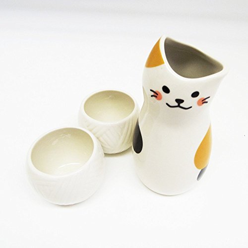 Sun Art Calico cat Sake Bottle and Sake Cups set SAN2524 from Japan