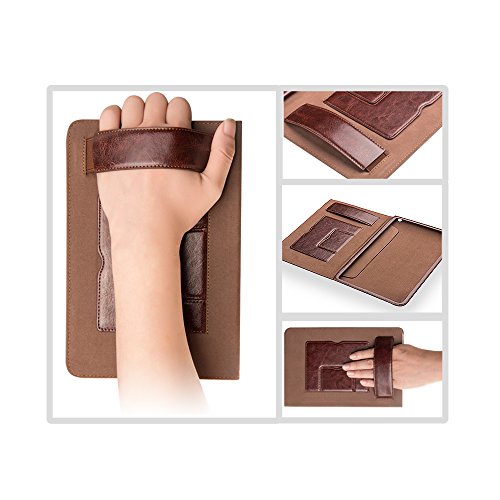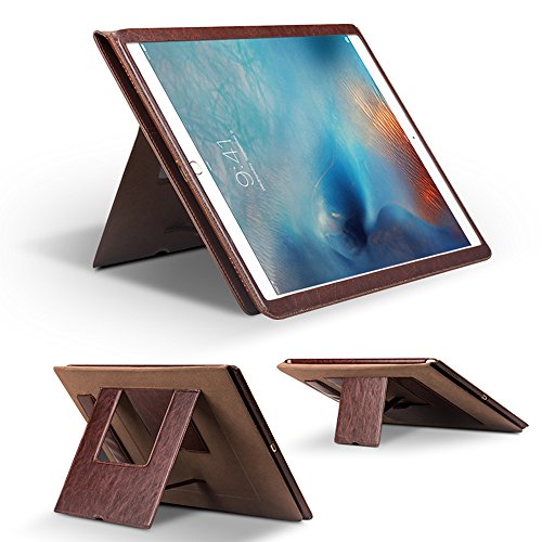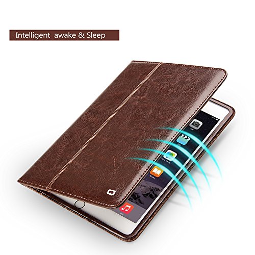 iPad Pro 9.7 inch Case, Genuine Leather Slim Smart Cover (with Folding Stand, Handstrap,and Auto Sleep & Wake up Feature), QIALINO Functional Protector for Apple ipad pro 9.7" and iPad Air 2, Brown