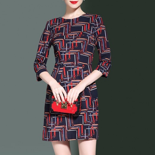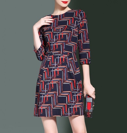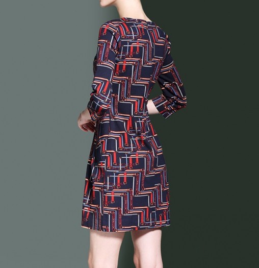 モダンな印象の、幾何柄ミニ丈ワンピース。
