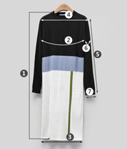 尺码 ①衣长 ②胸围 ③下摆围 ④肩宽 ⑤袖长 ⑥袖臂围 ⑦袖口围