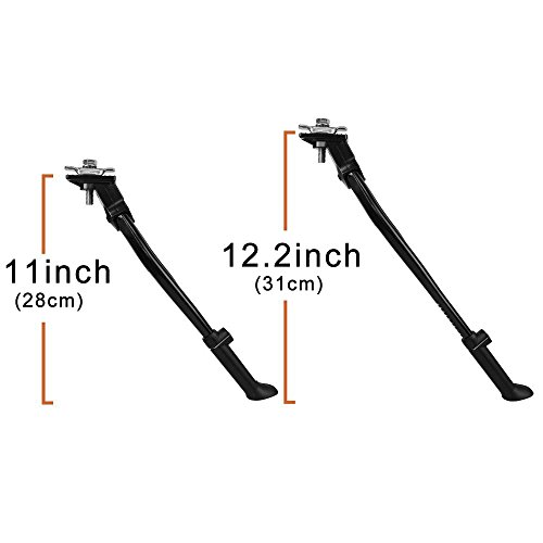 Studio : UPANTECH Publisher : UPANTECH Product Description Note:Please be careful to check if the screws are tightened regularly,to prevent falling off. This bike kickstand whit great balance even on uneven ground. Specification: Kickstand material:Aluminum alloy Color:Black Weight:280g Length:28cm~33cm/11'~13'(Adjustable) Fit for:24'~28' bike wheel Suitable for mountain bike,road bike,BMX,cruiser bicycle. Package included: 1 X Bike kickstand 0