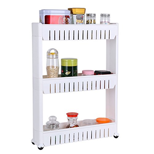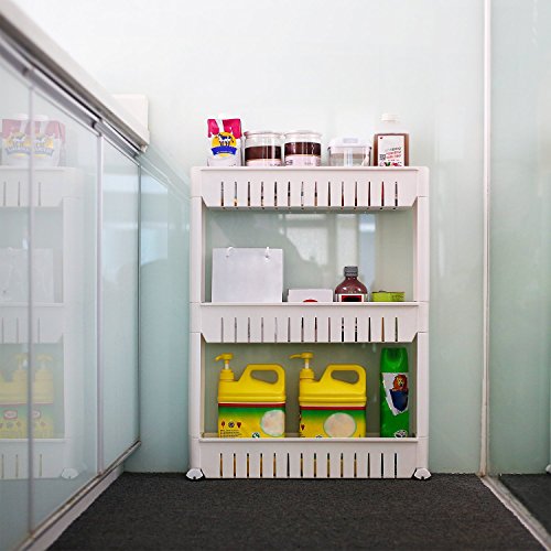 Easy to Move--Built-in removable wheels made this kitchen rack slides in/out easily between cabinets and appliances.Make your life easier and less cluttered with this convenient slide out storage tower, rack, cart cabinet.