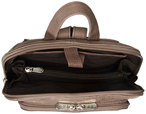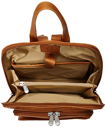 -. Feature : Zips down completely to reveal a spacious divided main compartment with a middle zip-pocket and tablet pocket. Two front gusseted pockets, one with an open phone pocket. Top handle for easy carrying and double adjustable backpack straps / Full grain genuine leather, made from full grain cowhide / Handcrafted in Colombia / Leather improves with age as it absorbs the oils from your hands and assumes a classic, worn look / 10 x 12 x 4 / Pockets: 1 interior slip, 1 interior zip, 2 exterior