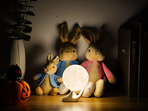 Studio : Shenzhen Guangyingliangpin Technology Ltd., Co Publisher : Shenzhen Guangyingliangpin Technology Ltd., Co Product Description You've only ever dreamed of touching the moon...now indulge yourself with the soothing glow of our photorealistic moon light. The LED light adjusts from soft white to yellow, creating the perfect ambience for a relaxing night or a romantic date. Moonstruck, anyone? ?EASY TO USE: With USB power cord, you can charge it with a normal USB charger. You tap your finger on the little metal knob to change colors and hold it down to make it dim or bright. ?PERFECT GIFT: -Perfect gift for lover,friend, parents,kids -Come with a beautiful gift box ?100% RISK-FREE SATISFACTION GUARANTEE:We also offer you 100% risk-free satisfaction guarantee, so you can rest assured to buy. Moreover, we are known for our excellent customer service and support! So, why think twice? ORDER NOW to get this amazing night light projector lamp. Specifications: Product name: Moon night light Material: PLA Body color: White Lighting Color: white and yellow Bulb: LED Wattage: 0.3W Voltage: DC 5V Battey capacity: 280mAh Charging time: 2-3 hours Working Time: 4-20 hours (depends on brightness) Power supply: USB DC 5V Size: 3.5IN Diameter Package content: